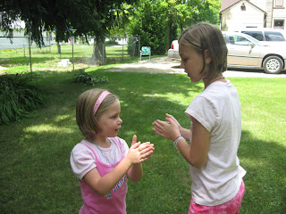 Mackenzie & Kennedy doing some hand clapping game together.